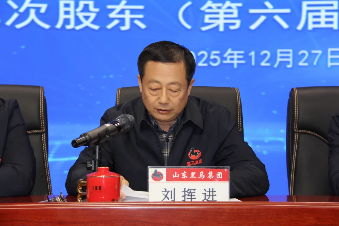 12月27日,山东黑马集团有限公司在集团总部会堂召开第三届十九次股东(第六届五次职工代表)大会,集团董事长刘玉江,执行董事长、总裁刘辉东等集团董事会成员出席,黑马集团股东及职工代表参加,集团常务副总裁、工会主席李华主持会议。会上董事长要求全体股东、骨干、职工要很好的学习以上几个文件,吃透精神。今后五年是大决战的五年,是决定性的五年,要做到不吃老本,立新功。要看到问题在哪,主动思考问题,考虑今天做什么事情,要转变观念,接受新生事物,向智能化、数字化、现代化、标准化、国际化转变,助推企业高质量发展。执行董事长、总裁刘辉东在讲话中对过去一年以及“十四五”时期的工作进行了全面总结,并强调需正视现存问题,把握工作重点,推动改造升级工作切实落地,深化内部管理与风险管控,激发企业活力,持续提升员工福利待遇,积极开展文体活动,增强员工幸福感、获得感。要遵循董事长提出的“不吃老本立新功”要求,推动企业朝着智能化、数字化、现代化、标准化、国际化方向发展,做好开源节流工作,设立创新奖励机制,建立完善的客户档案,为商户提供精准服务。同时,要尊重人才,发扬敢打硬拼的精神,开启企业发展新征程,全力以赴完成明年以及“十五五”规划的各项任务与指标。集团党委书记、执行总裁刘挥进向大会报告《二〇二五年经营管理方案执行情况的报告》。监事会主席尚红梅向大会报告《山东黑马集团有限公司监事会工作报告》。执行总裁杨青东向大会报告《山东黑马集团二〇二六年经营管理改革方案》。执行总裁陈先锋向大会报告《山东黑马集团“十四五”工作总结和“十五五”发展规划》。经分组讨论,通过表决,大会一致通过了《二〇二五年经营管理方案执行情况的报告》、《山东黑马集团有限公司监事会工作报告》、《山东黑马集团二〇二六年经营管理改革方案》以及《山东黑马集团“十四五”工作总结和“十五五”发展规划》。