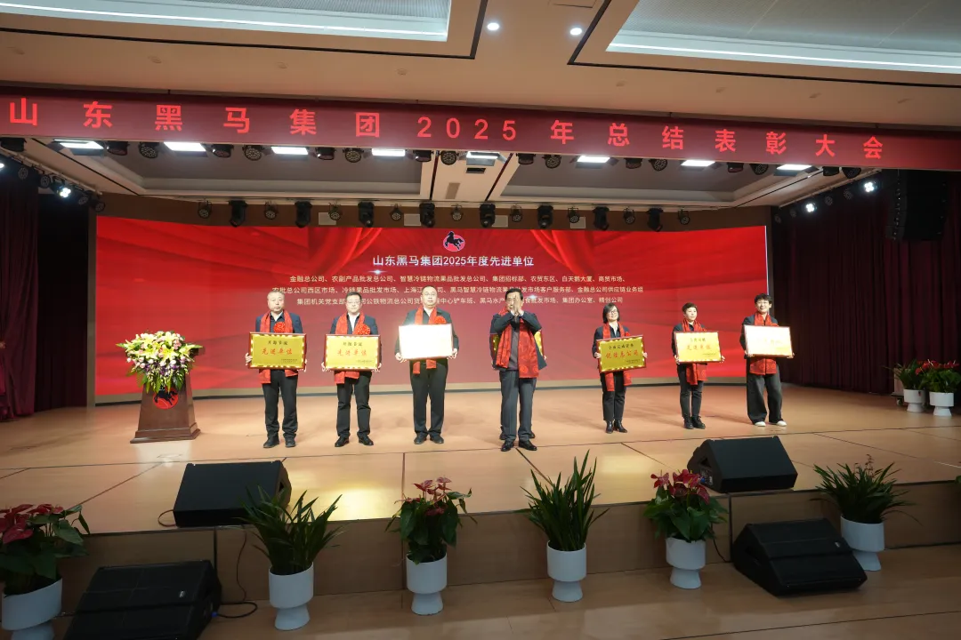 全体参会人员齐唱《黑马赞歌》。 集团执行总裁杨青东宣读2025年先进单位和个人表彰决定。 在欢快的进行曲中,董事长刘玉江和执行董事长、总裁刘辉东分别为2025年度先进单位代表和先进个人代表颁奖,颁奖现场喜气盎然,掌声雷动不息,声声喝彩里,满是对获奖集体与个人的诚挚祝贺、由衷赞誉,更凝聚着全体伙伴同心向新、笃行奋进的磅礴力量,为新征程吹响昂扬向上的冲锋号角! ▲德州市歌舞剧院 王一凡《世界赠予我的》《人间》 ▲房地产总公司 音乐快板《2026创新高》 ▲农批总公司 合唱《黑马欢迎您》 ▲中国戏曲学院 时露露 京剧《贵妃醉酒》 ▲商贸总公司 小品《聪明与实在》 ▲农批总公司 合唱《如愿》 ▲金融总公司 情景剧《默契》 ▲机关总部 合唱《爱的华尔兹》 ▲德州市京剧团 陈思含 京剧《穆桂英挂帅》 ▲新兴总公司 诗朗诵《立新功启新章》 ▲集团工会 走秀表演 《丽人行》 ▲冷链总公司 合唱《黑马驰骋》 ▲山河公铁总公司 歌伴舞《为了谁》 2026年是集团“十五五”规划开局之年,是打基础、增后劲的一年,处于承前启后的关键时期。展望未来,我们要齐心协力打好下一个五年规划基础,确保明年开好局、起好步,在前进道路上,按照董事长提出的“向智能化、数字化、标准化、现代化、国际化发展”,不吃老本、立新功,迈向“十五五”,新的起点、新的征程,让我们在各级党委和政府的正确领导和大力支持下,紧紧围绕董事长、董事会决策部署,以更加昂扬的姿态,攻坚克难,勇挑重担,一马当先,凝心聚力谱写集团高质量发展的崭新篇章!