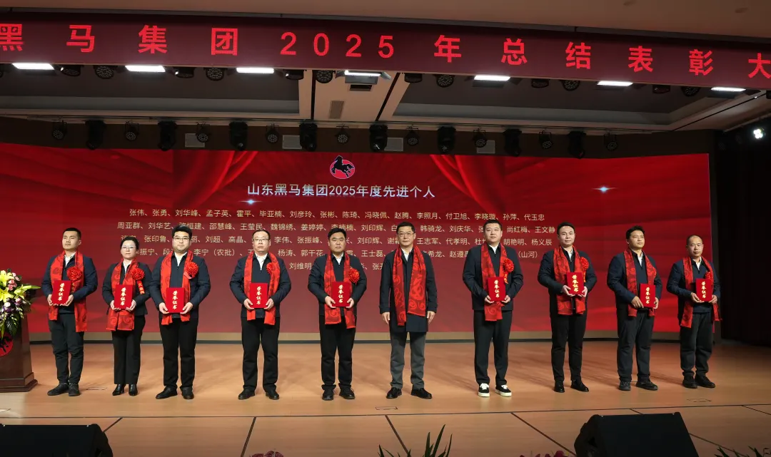 2026年2月7日,山东黑马集团“春盈黑马贺新春,凝心聚力向未来”2025年度总结表彰暨2026年迎春联欢会”在集团总部会堂举行。山东黑马集团董事长刘玉江,执行董事长、总裁刘辉东等领导班子成员,黑马集团退休老干部,先进职工家属,业户代表,2025年度先进单位代表及先进个人代表及除值班的全体员工欢聚一堂,共同回顾过去一年的奋斗历程,展望2026年发展新征程。