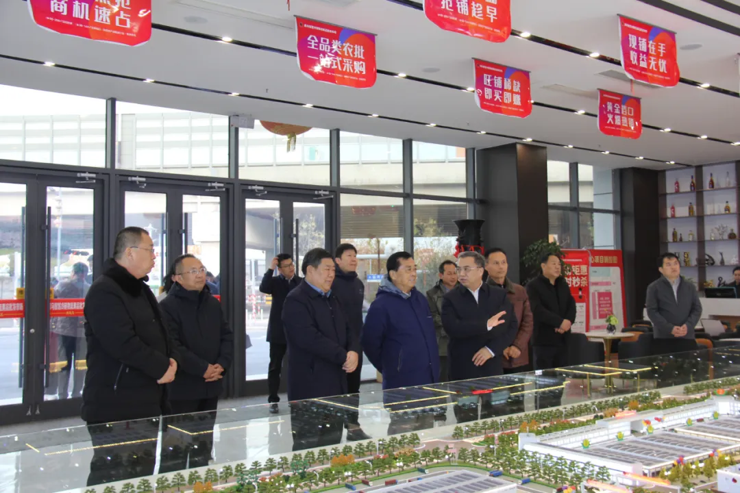 麻鹏飞一行观看了市场宣传片并实地调研市场,深入交流,全面直观地了解了市场的整体规划、功能布局、运营模式及发展愿景,并给予充分肯定。